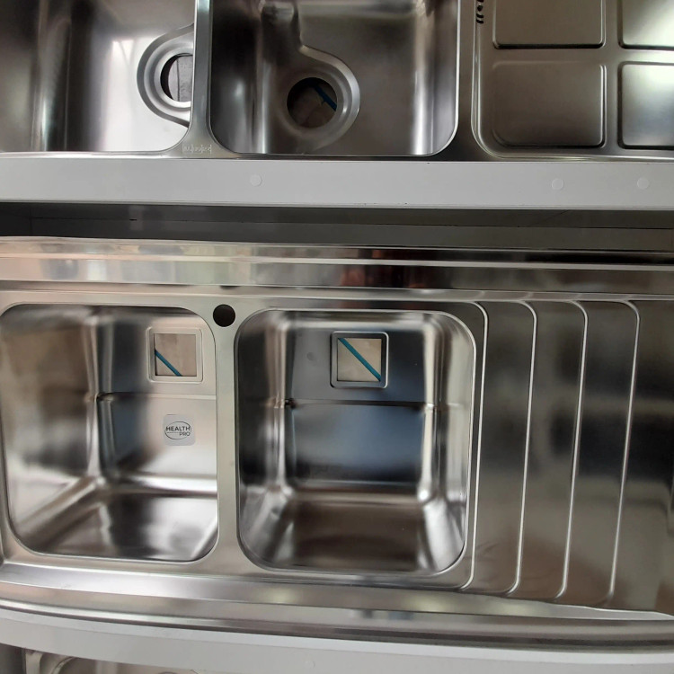 سینک استیل آشپزخانه ورق ۸میل عمق ۲۳ دارای لوازم نصب، سبد و تخته گوشت و ماده پلیش ابعاد ۱۲۰در۶۰ روکار لگن چپ و راست موجود میباشد قیمت ها یکی هست طرح ها متفاوت کیفیت عالی ارسال به کل کشور انجام میشود