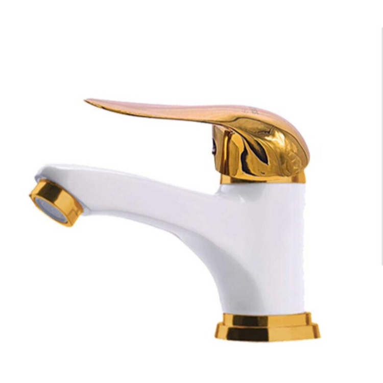 شیر روشویی سفید طلایی مدل اردکی دارای رنگ کوره ای و لوازم نصب وگارانتی شرکتی تنه تمام برنجی دارای نشان استاندارد فروش به صورت عمده و تک امکان پذیر میباشد ارسال به کل کشور رایگان میباشد