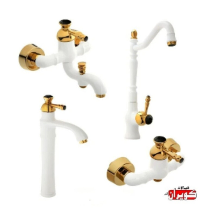 مجموعه ۴عددی شیرآلات مدل فلورانس سفید طلایی با روشویی پایه بلند دارای نشان استاندارد و لوازم نصب وگارانتی کتبی شرکتی کیفیت تضمینی فروش به صورت عمده و تک امکان پذیر میباشد دارای رنگ کوره ای پی وی دی رنگ ثابت ارسال رایگان به کل کشور انجام میشود