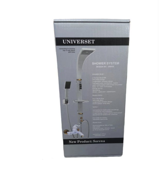 علم دوش دوکاره یونیورست مدل سورنا دارای رنگ بندی سفید و سفید طلایی دارای لوازم نصب و قطعات کامل فروش به صورت عمده و تک امکان پذیر میباشد کیفیت عالی تضمینی ارسال به کل کشور انجام میشود