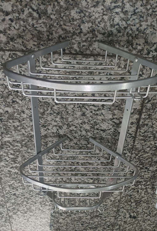 آویز کنجی حمام دارای رنگ بندی متنوع، جنس درجه یک آلومینیوم ضد زنگ، فروش به صورت عمده و تک امکان پذیر میباشد، دوطبقه، ارسال به کل کشور انجام میشود