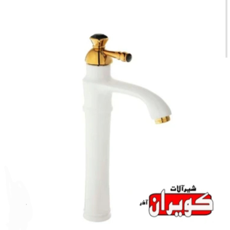 شیر روشویی پایه بلند سفید طلایی مدل نگین دارنگین مشکی دارای نشان استاندارد دارای لوازم نصب و۱۰ سال گارانتی کتبی شرکتی تنه تمام برنجی رنگ پی وی دی کیفیت عالی ارسال به کل کشور انجام میشود