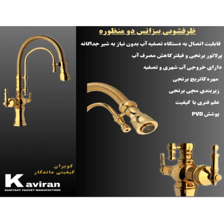 شیر آشپزخانه فنری طلایی مات تصفیه دار مدل بیزانس ارسال به کل کشور